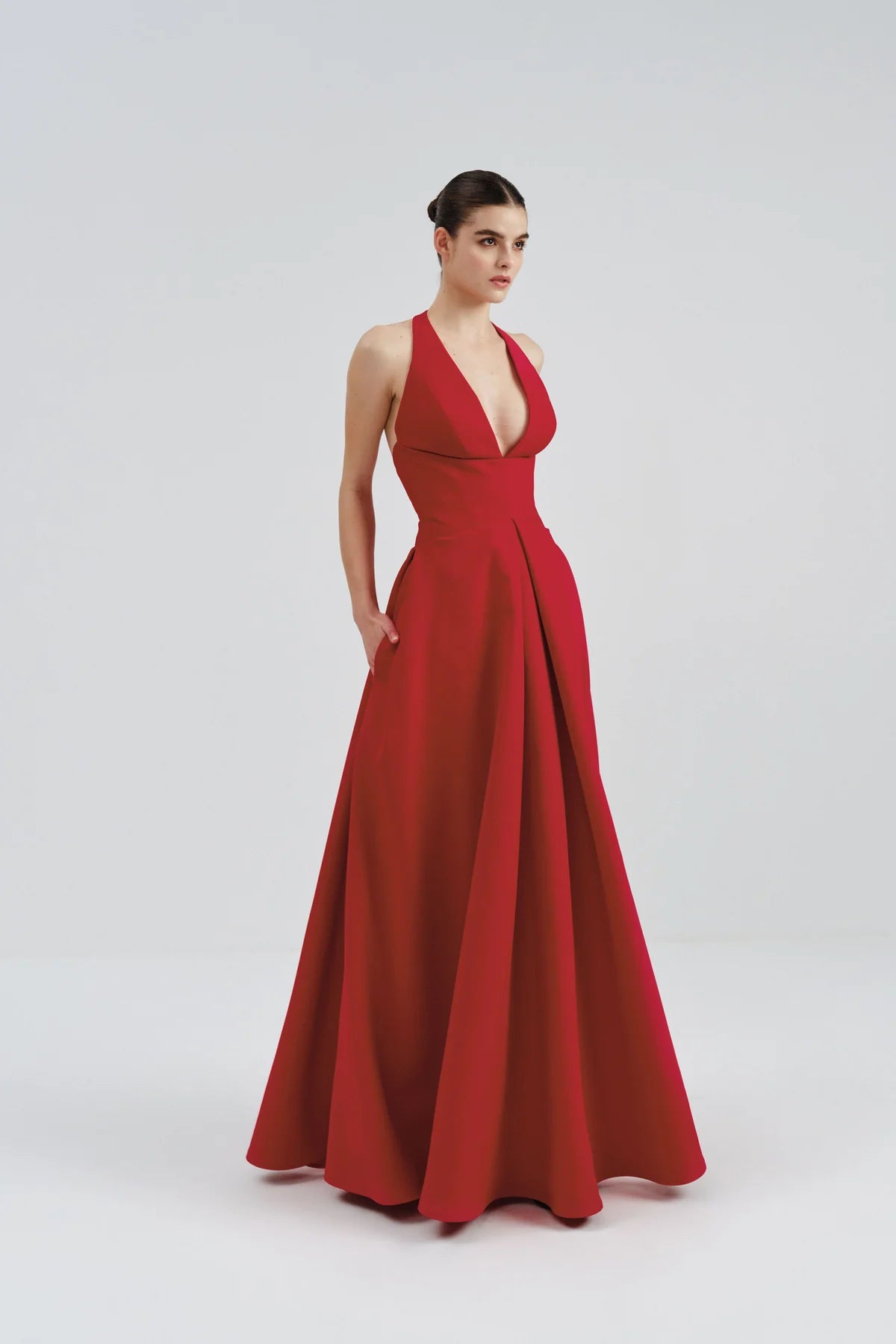 Designed to make a statement while remaining effortlessly chic, the Irma Halter Neck Mikado Maxi Dress is the perfect choice for those who appreciate clean lines, premium fabrics, and sophisticated design.