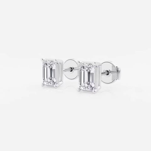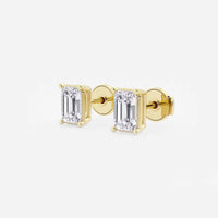 Stunning and elegant Moissanite lady solitaire emerald-cut stud earrings make for a stylish touch to any ensemble. Each earring is secured with a guardian back for a safe and comfortable wear.
