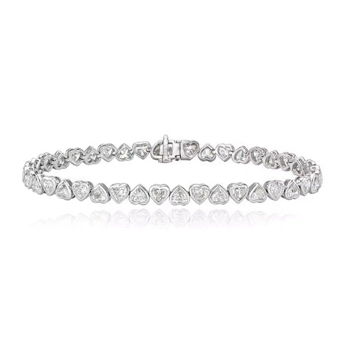 A modern take on a classic design with ultra-glamorous fancy shapes tennis bracelet (4ctw.). Our Fancy Forever Heart Tennis Bracelet is crafted from high-quality moissanite and materials, this bracelet is designed for durability and all-day comfort. Perfect as a wedding bracelet, anniversary gift, or a stunning statement piece, it embodies timeless elegance and sophisticated style.