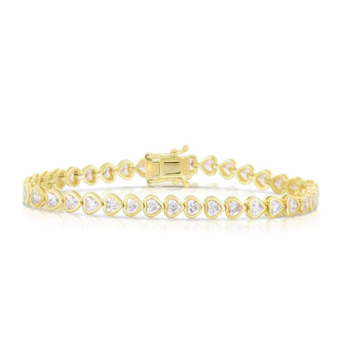 Delicate yet dazzling, this 18K real gold vermeil over sterling silver tennis bracelet is the perfect blend of elegance and charm. Featuring high quality moissanite stones this bracelet offers a unique sparkle that enhances its romantic appeal making it perfect for stacking or wearing alone as a refined statement piece.