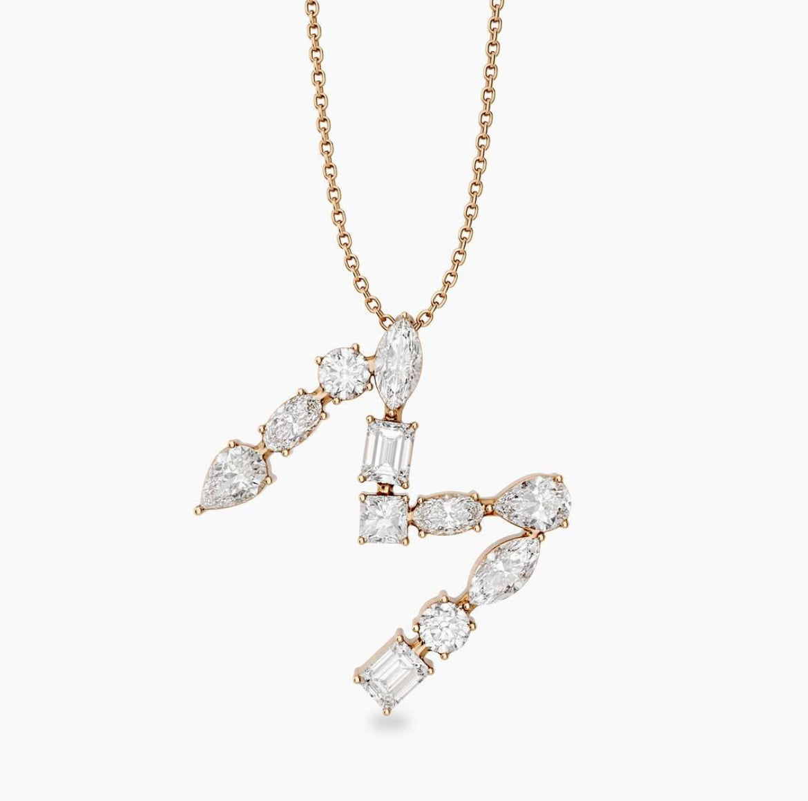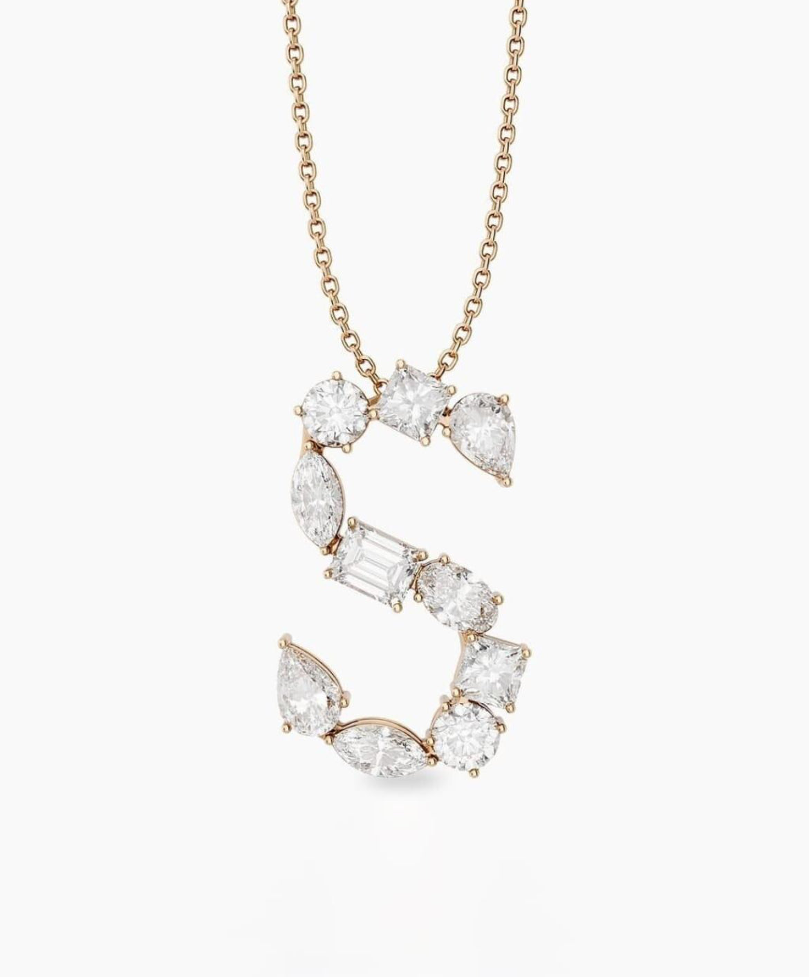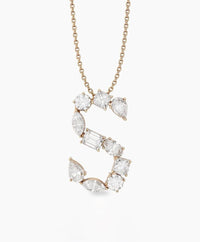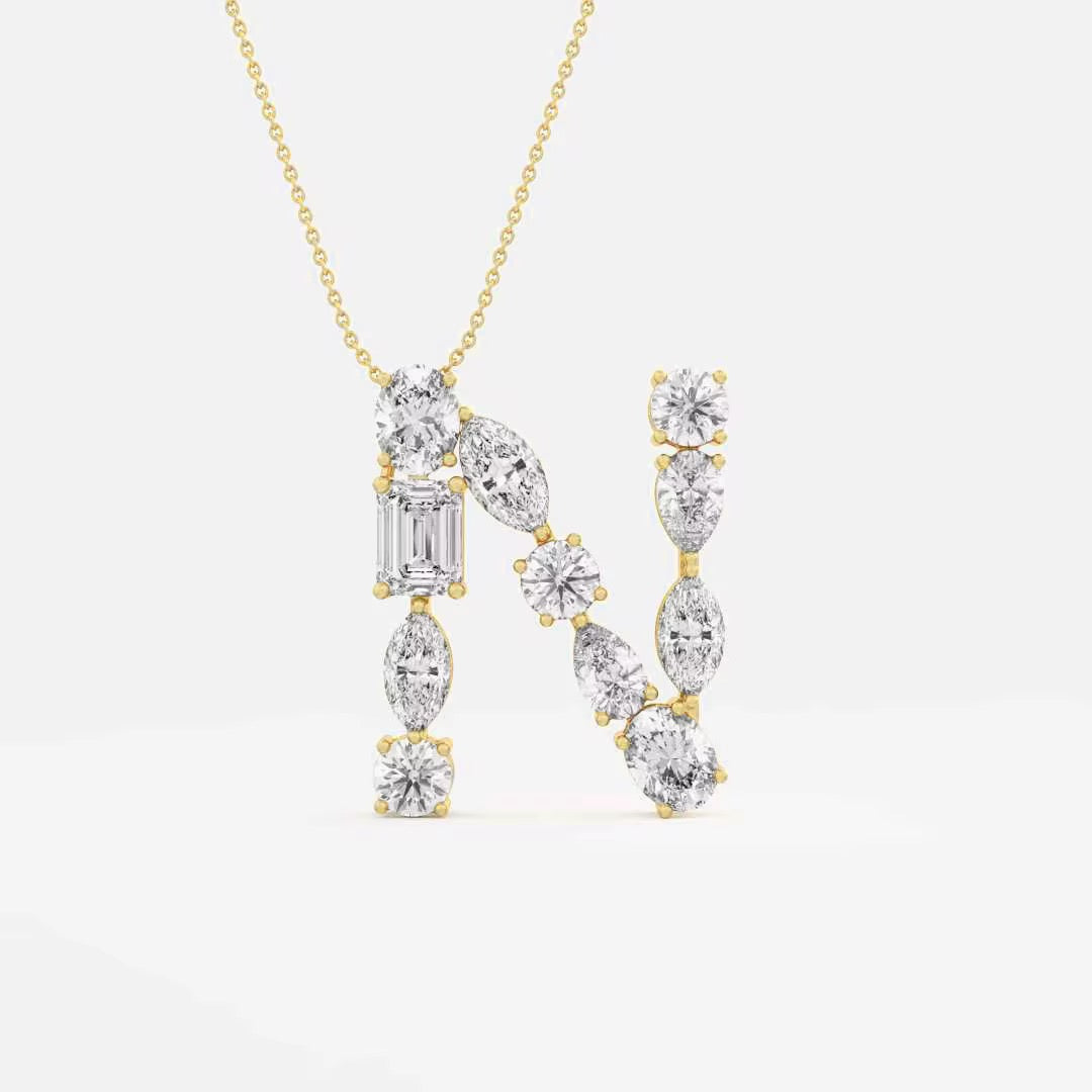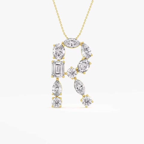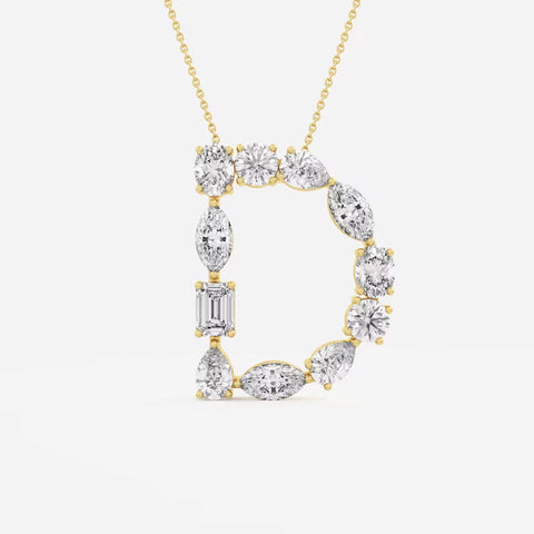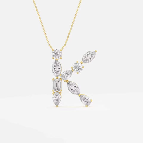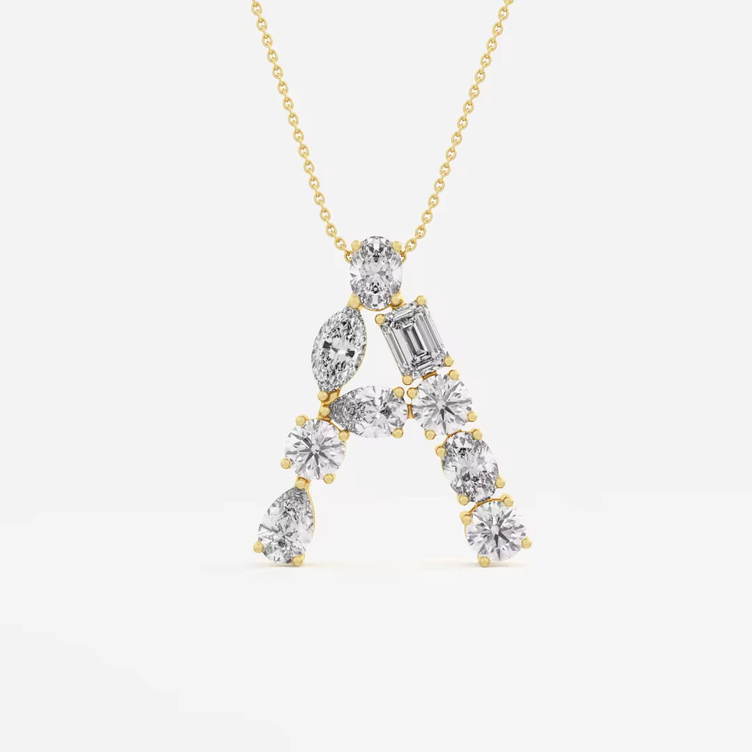 A modern take on a classic design with ultra-glamorous fancy shapes initial pendant necklace (4ctw.). Our Fancy Multi-Shape initial pendant Necklace is crafted from high-quality moissanite and materials, made to mimic the unmatched sparkle of diamonds, Moissanite offers exceptional clarity, durability, and eco-conscious beauty this pendant is designed for durability and all-day comfort. Perfect as a valentine's gift, anniversary gift, or a stunning statement piece, it embodies timeless elegance and sophisticated style.
