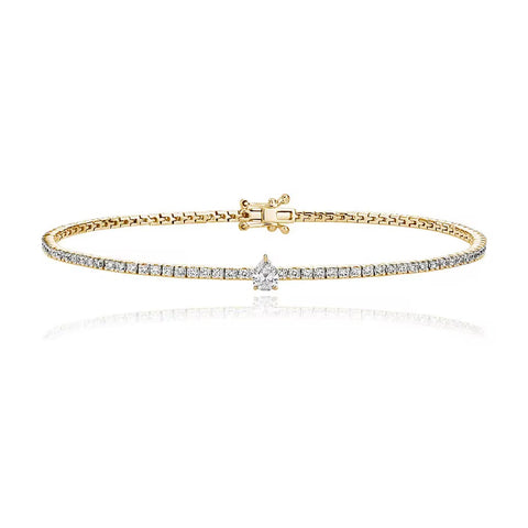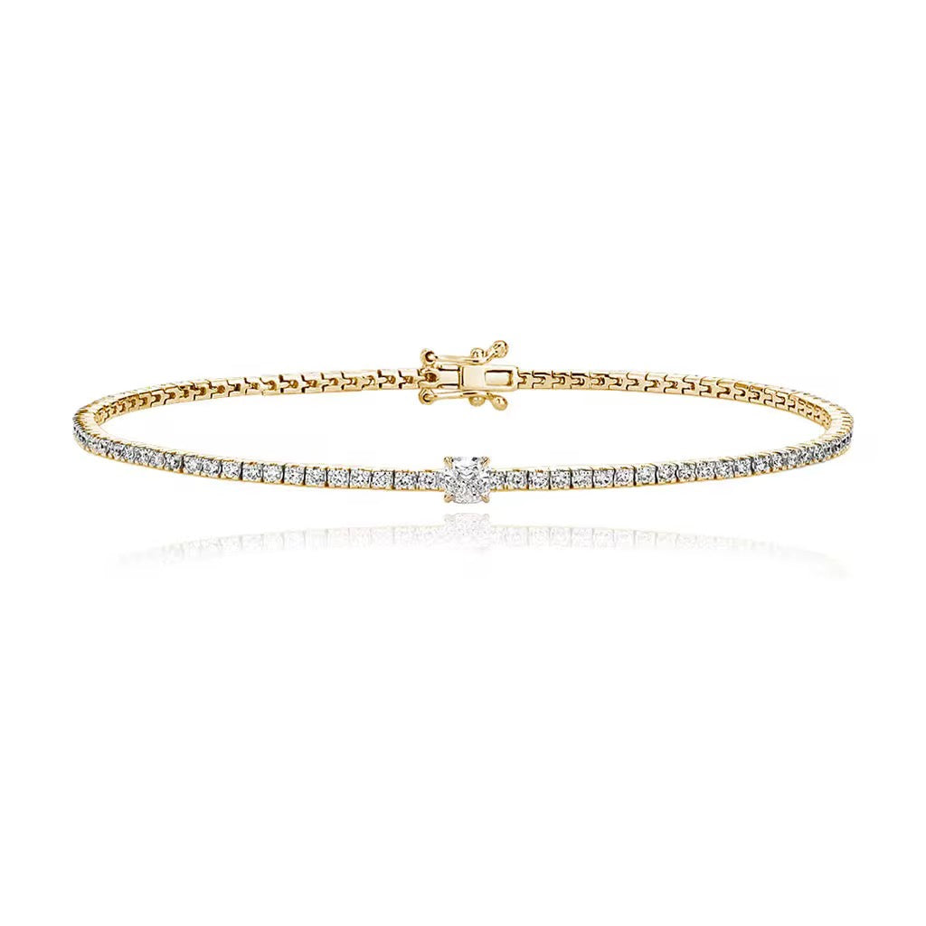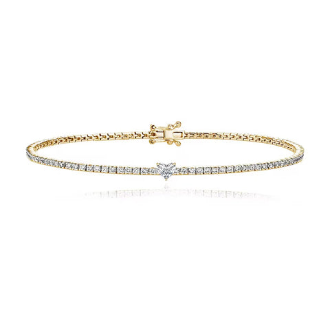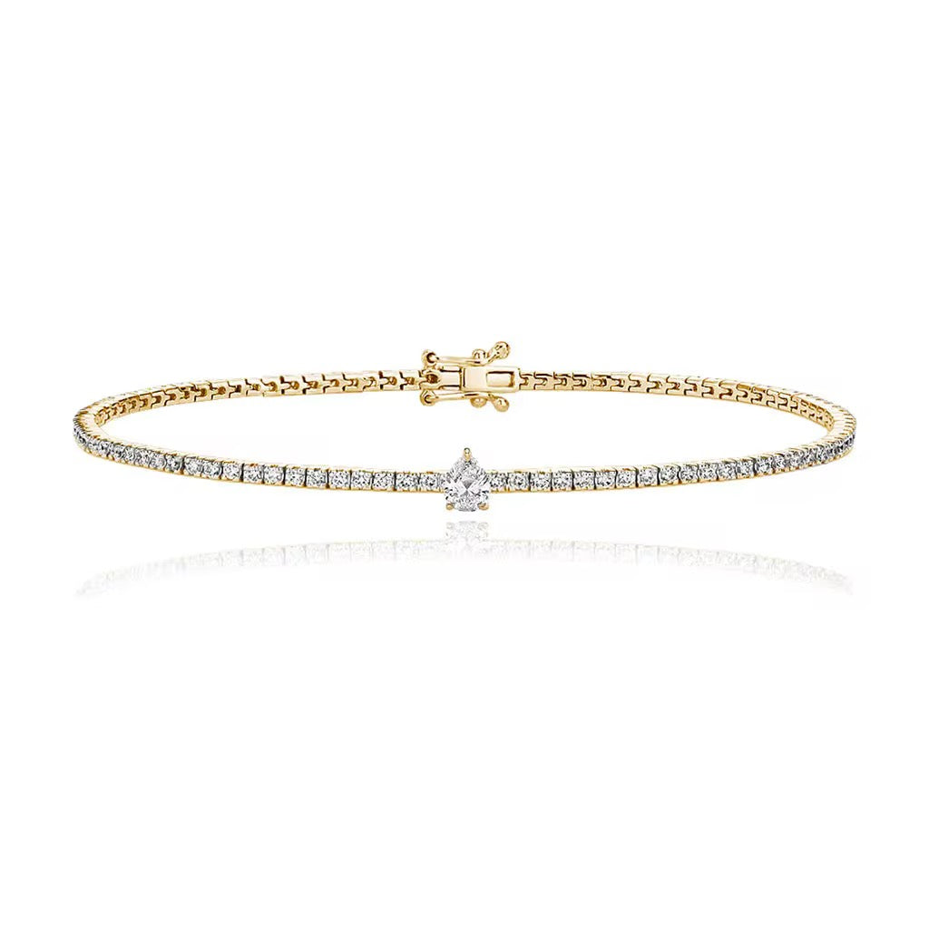 Delicate yet dazzling, this 18K Gold Vermeil fancy single shape tennis bracelet is the perfect blend of elegance and charm. Featuring high quality Moissianite stones this bracelet offers a unique sparkle that enhances its romantic appeal making it perfect for stacking or wearing alone as a refined statement piece.