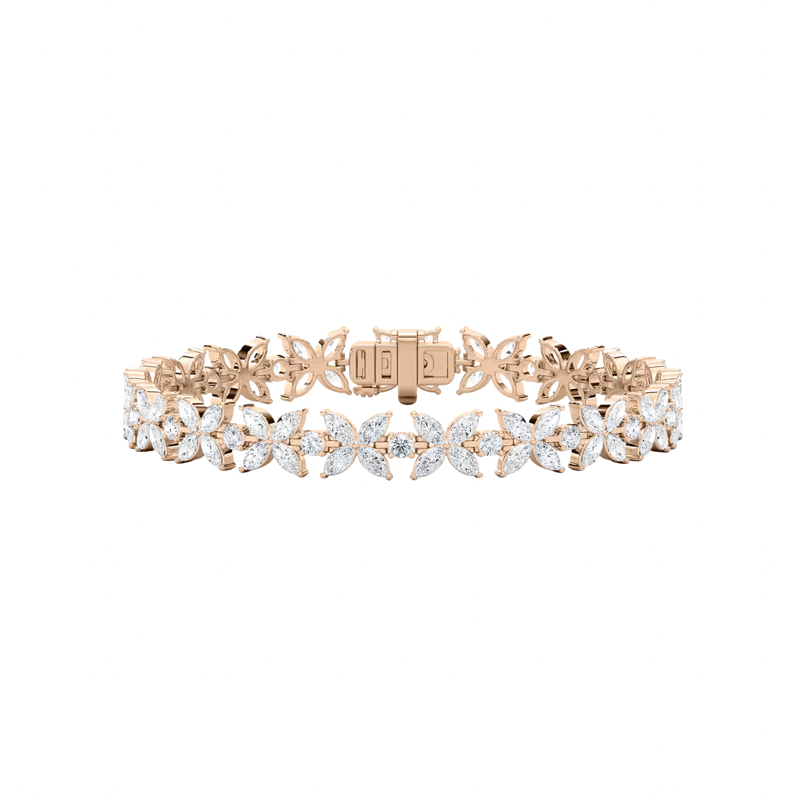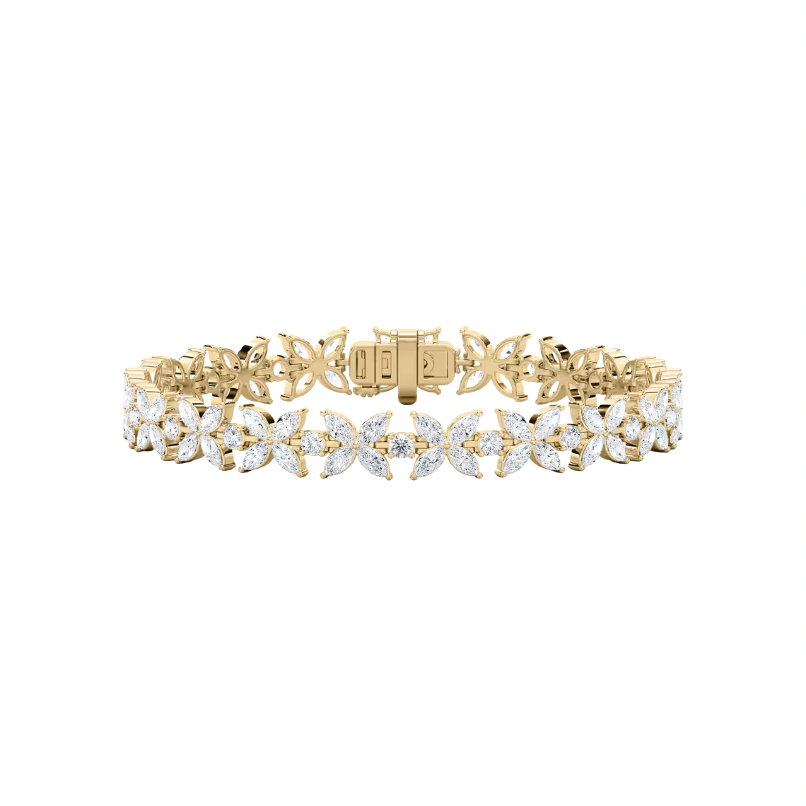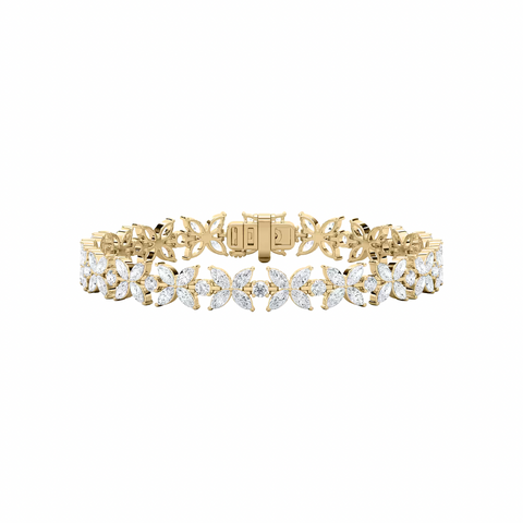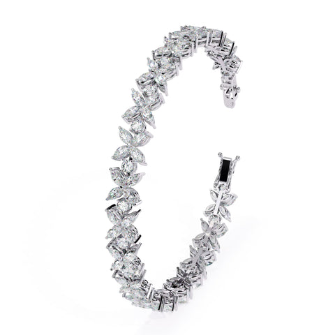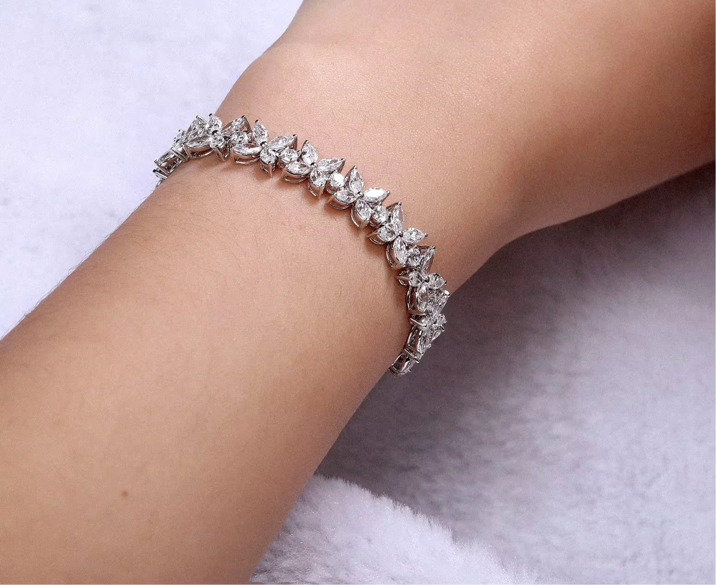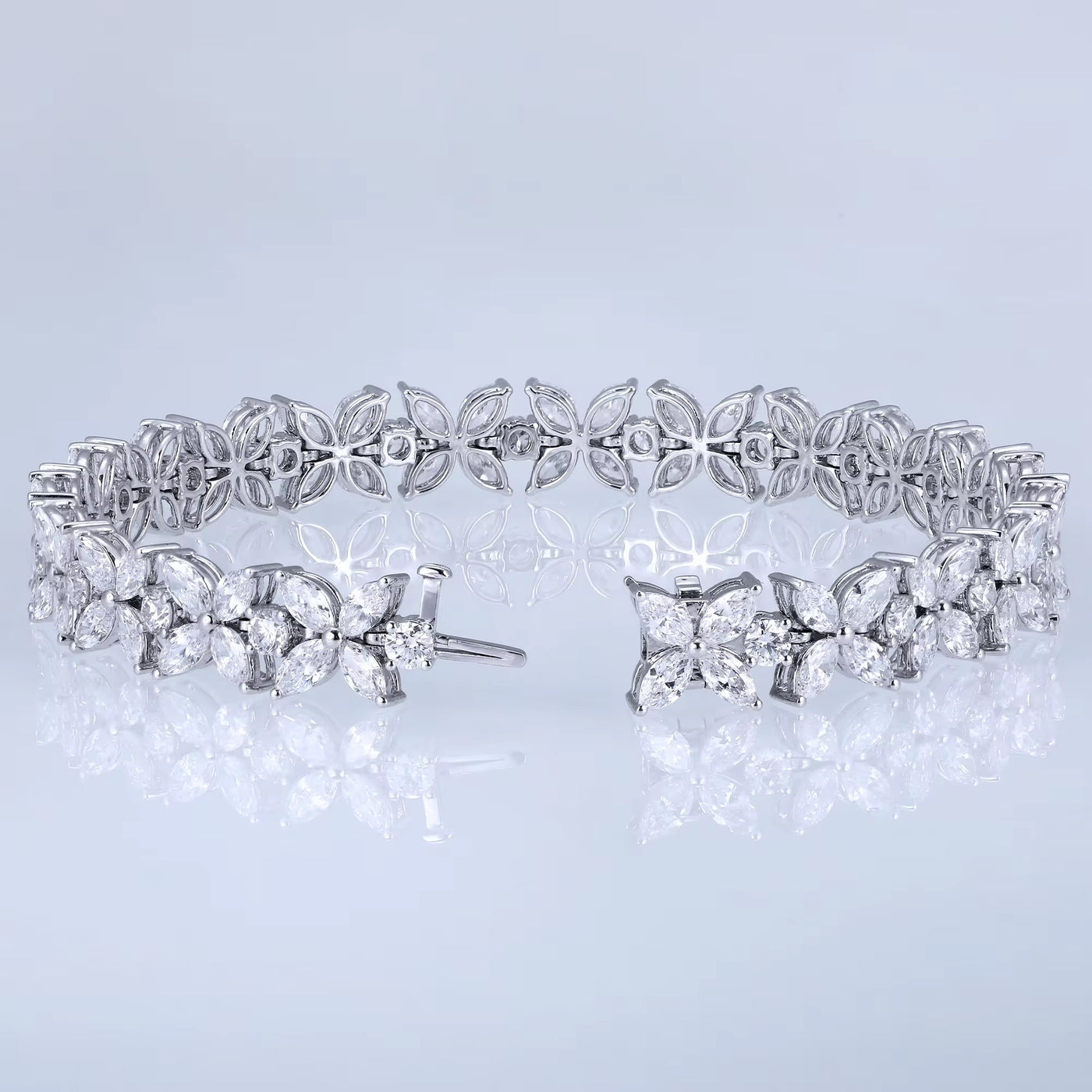 Timeless and elegant, our Florence Tennis Bracelet has approximately 120 Moissanite marquise and round stones a must-have for any jewelry collection. This bracelet features a stunning combination of round and marquise shaped stones arranged into elegant floral designs. The sophisticated flower design is a true symbol of everlasting beauty and elegance. Pair with our Florence necklace and earrings for a stunningly complete look.