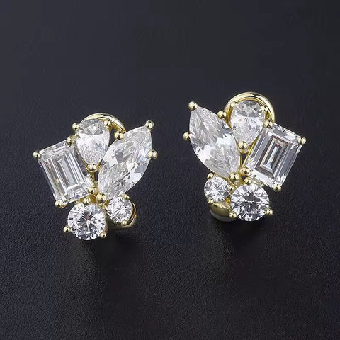 Make a striking statement with our exquisitely designed multi-stone fancy earrings, featuring a dazzling combination of 1.00 cwt. and 3.00 cwt. of premium moissanite. Expertly cut to mimic the brilliance of diamonds, each stone radiates exceptional fire and clarity.