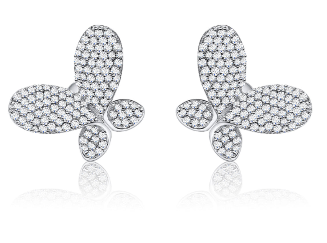 Papillone Stud Earrings with Sterling Silver 18K Gold Plated with Cubic Zirconia Butterfly Pave Earrings. Elevate your style with these brightly polished 18K gold plated sterling silver earrings. Enchanting butterflies sparkling with round brilliant cut -like cubic zirconia's exude jubilance.
