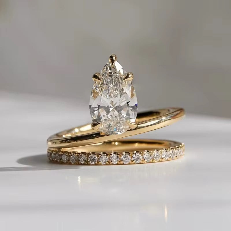 This 3ct. pear wrap around engagement ring is crafted from high-quality Moissanite and materials, this ring is designed for durability and all-day comfort. Perfect as a wedding band, anniversary gift, or a stunning statement piece, it embodies timeless elegance and sophisticated style.