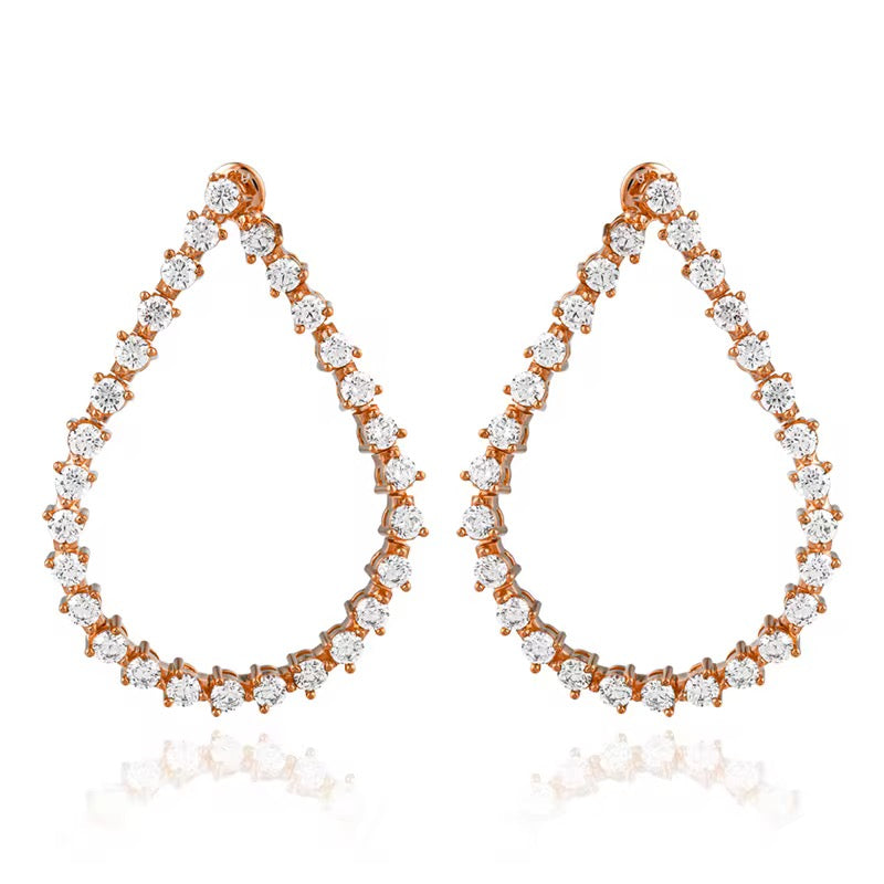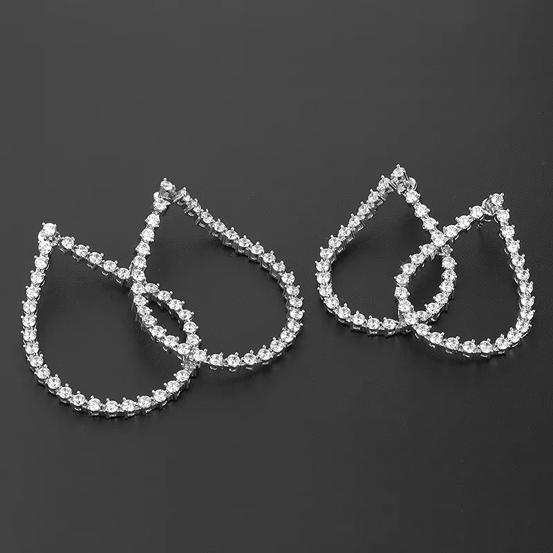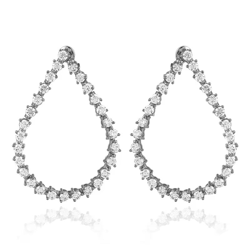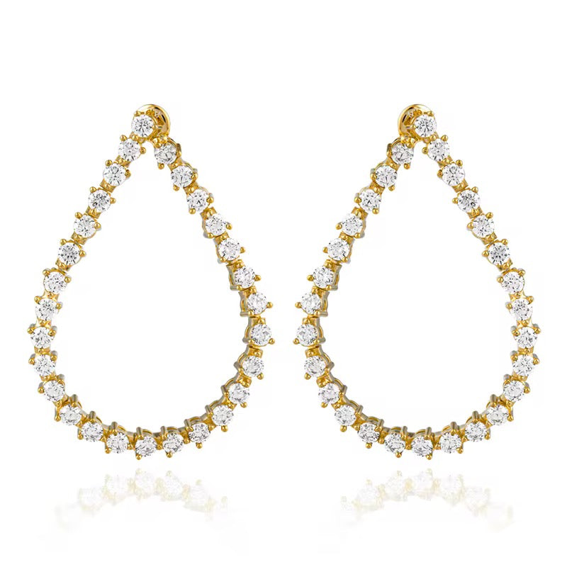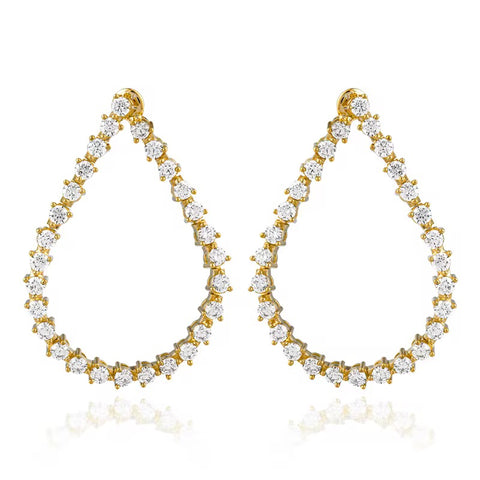 Gorgeous and unapologetically bold our Solange teardrop tennis earrings feature high quality round moissanite diamonds with a 18K gold vermeil finish. This design mimics a tennis design in a teardrop curve. Be ready for all those complements.