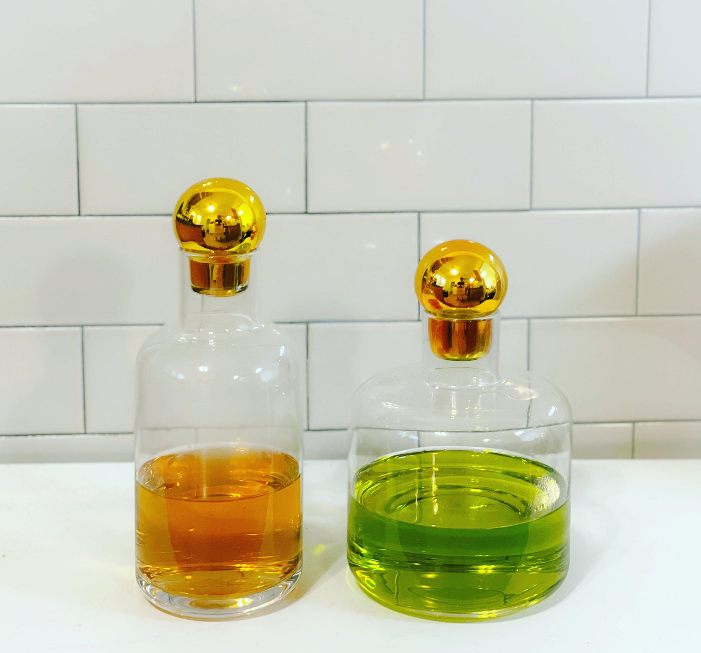 Glass Decanter with Gold Stopper Glass Decanter with Gold Stopper