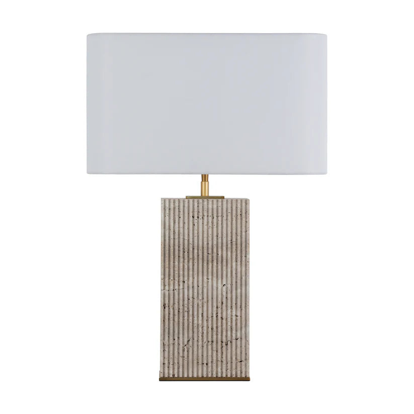 The Cambria Cube Table Lamp is a statement in understated luxury. Its tapered base, sculpted from genuine travertine, highlights the stone’s natural quality. A hand-finished linen shade casts a soft, ambient glow, while a coordinating marble adds a sophisticated finishing touch. From top to bottom, Cambria is the embodiment of timeless elegance and artisanal craftsmanship.