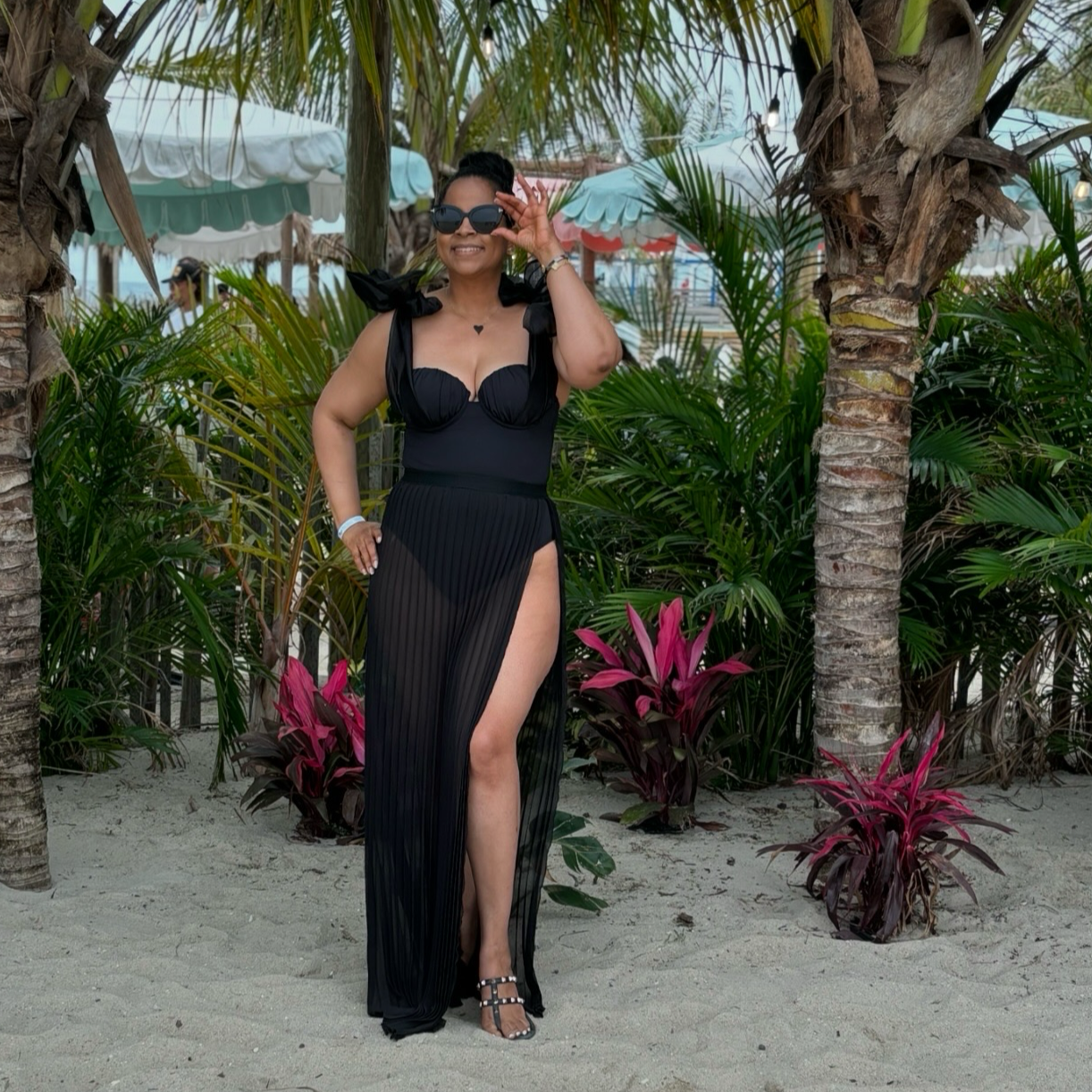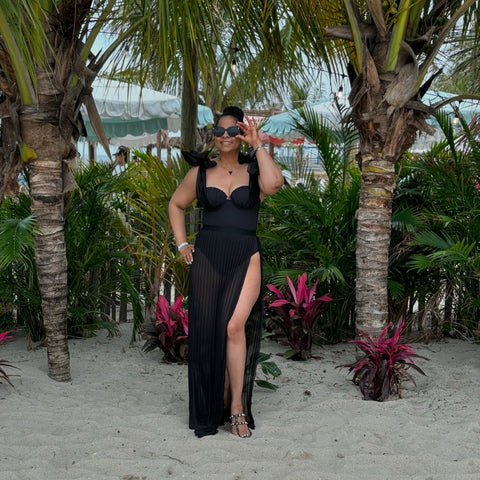 Our Lindsey One Piece Swimsuitt is an island adventure all in one piece! This ultra-sleek one piece has a plunging neckline, long soft extravagant organza ties to give a stunning finish. Lindsey One Piece Swimsuit Pair with our Ciara Pleated Sheer Skirt for an elegant combination.