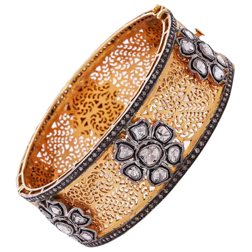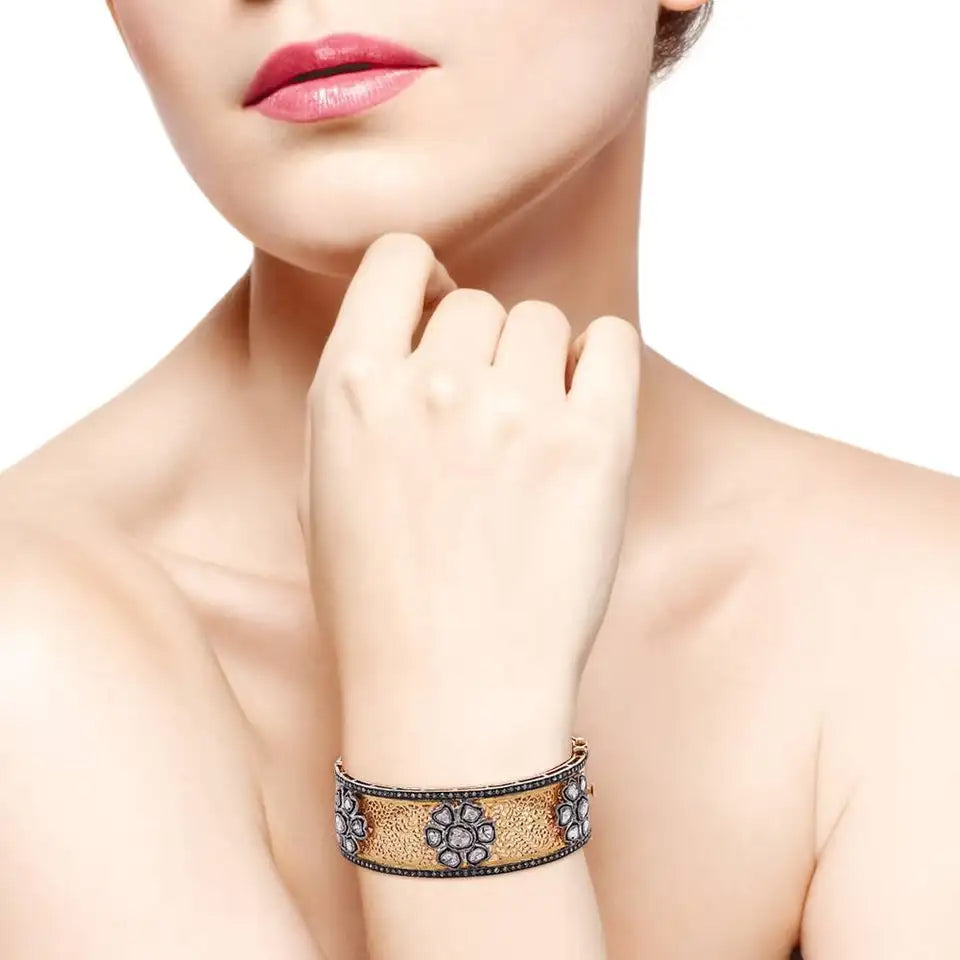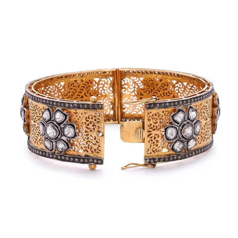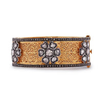 Stunning and elegant diamond rose cut bracelet filled with our unique brown diamonds in a pave setting. Exquisite lace pattern adorns this bracelet and closes securely with 2 clasps. Perfect for your upcoming special occasions.