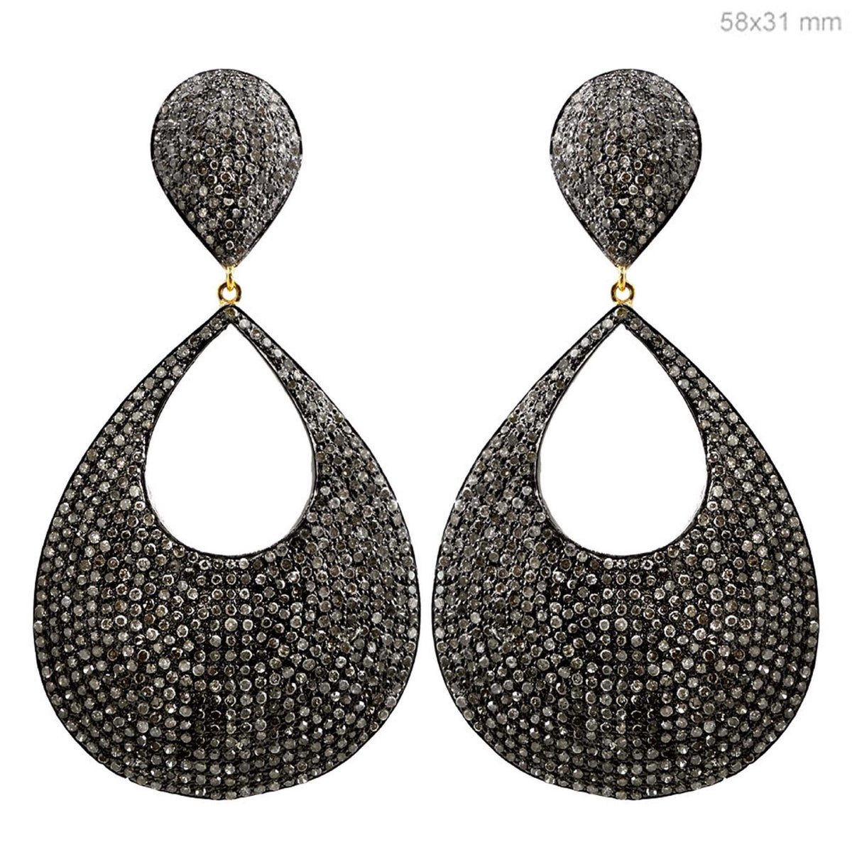 Description for Diamond Hollow-Out Teardrop Pave Earrings;
