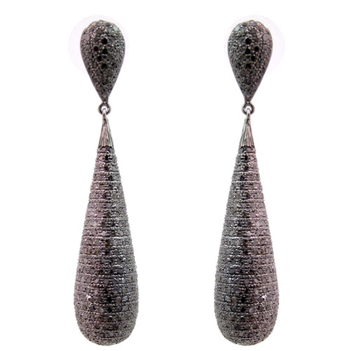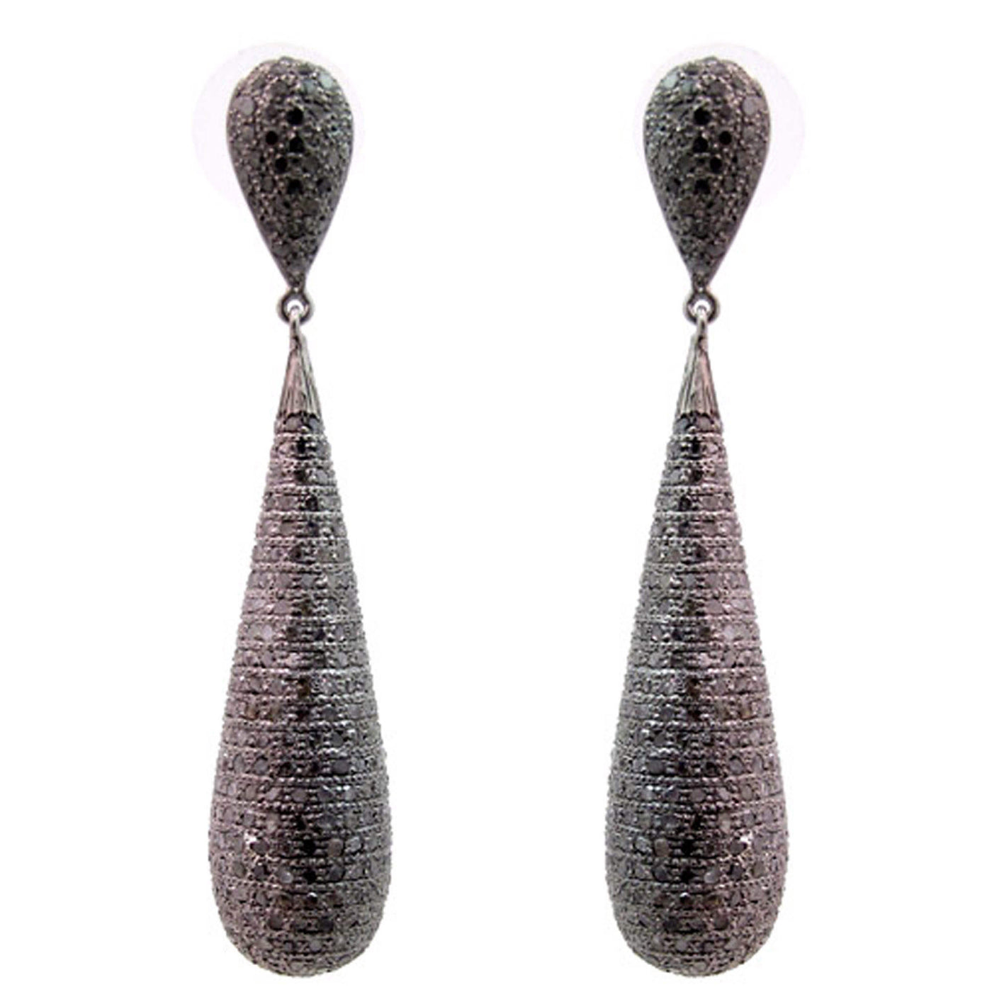 Stunning and elegant skinny drop earrings filled with our unique brown diamonds in a pave setting. Perfect pair for your upcoming special occasions.