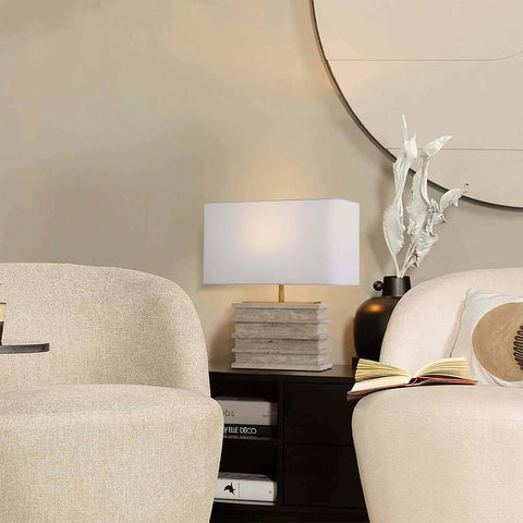 The Cambria Table Lamp is a statement in understated luxury. Its tapered base, sculpted from genuine travertine, highlights the stone’s natural quality. A hand-finished linen shade casts a soft, ambient glow, while a coordinating marble adds a sophisticated finishing touch. From top to bottom, Cambria is the embodiment of timeless elegance and artisanal craftsmanship.