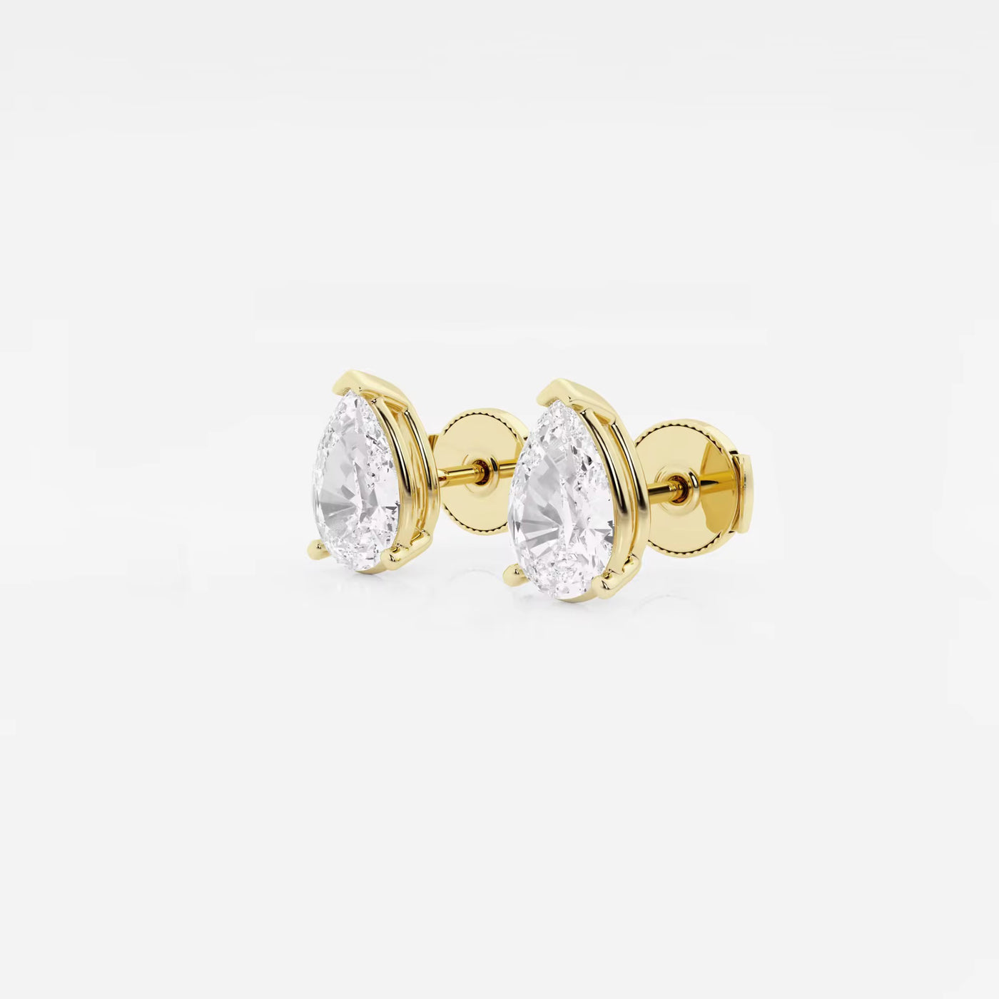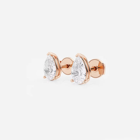 Beautiful Moissanite lady solitaire pear stud earrings make for a stylish touch to any ensemble. Each earring is secured with a guardian back for a safe and comfortable wear.