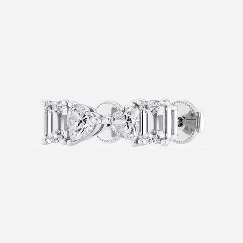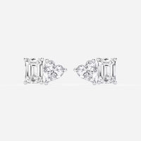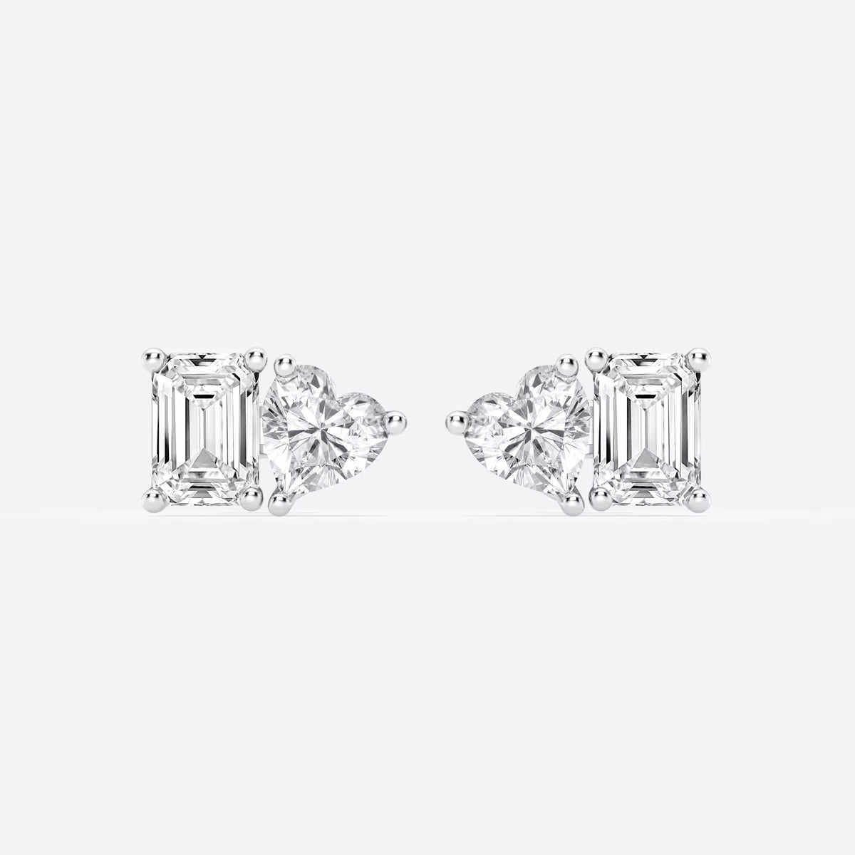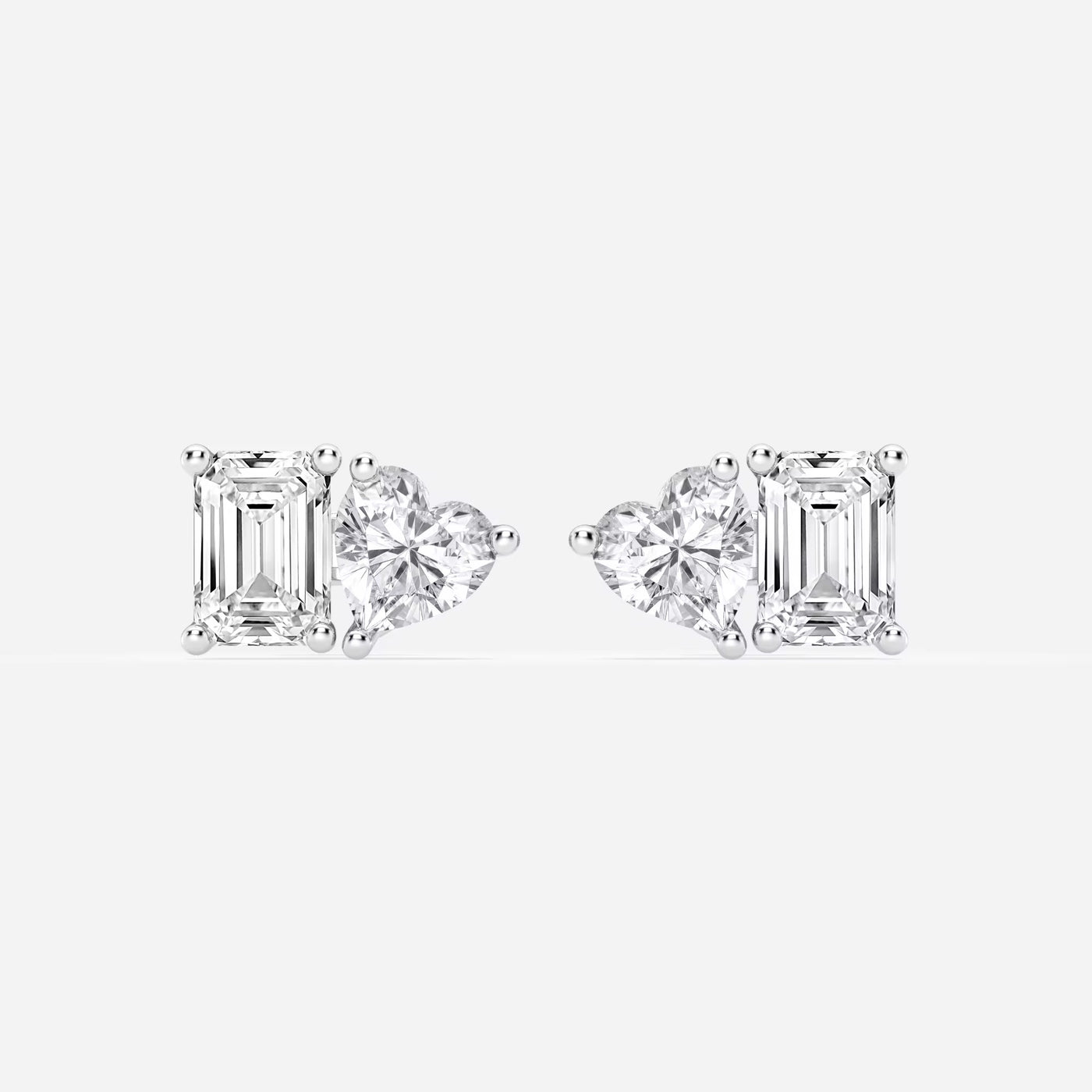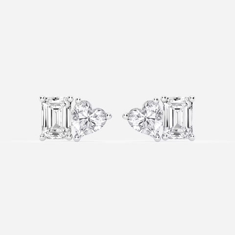 Beautiful Moissanite two-stone heart and emerald cut earrings make for a stylish touch to any ensemble. Each earring is secured with a guardian back for a safe and comfortable wear.